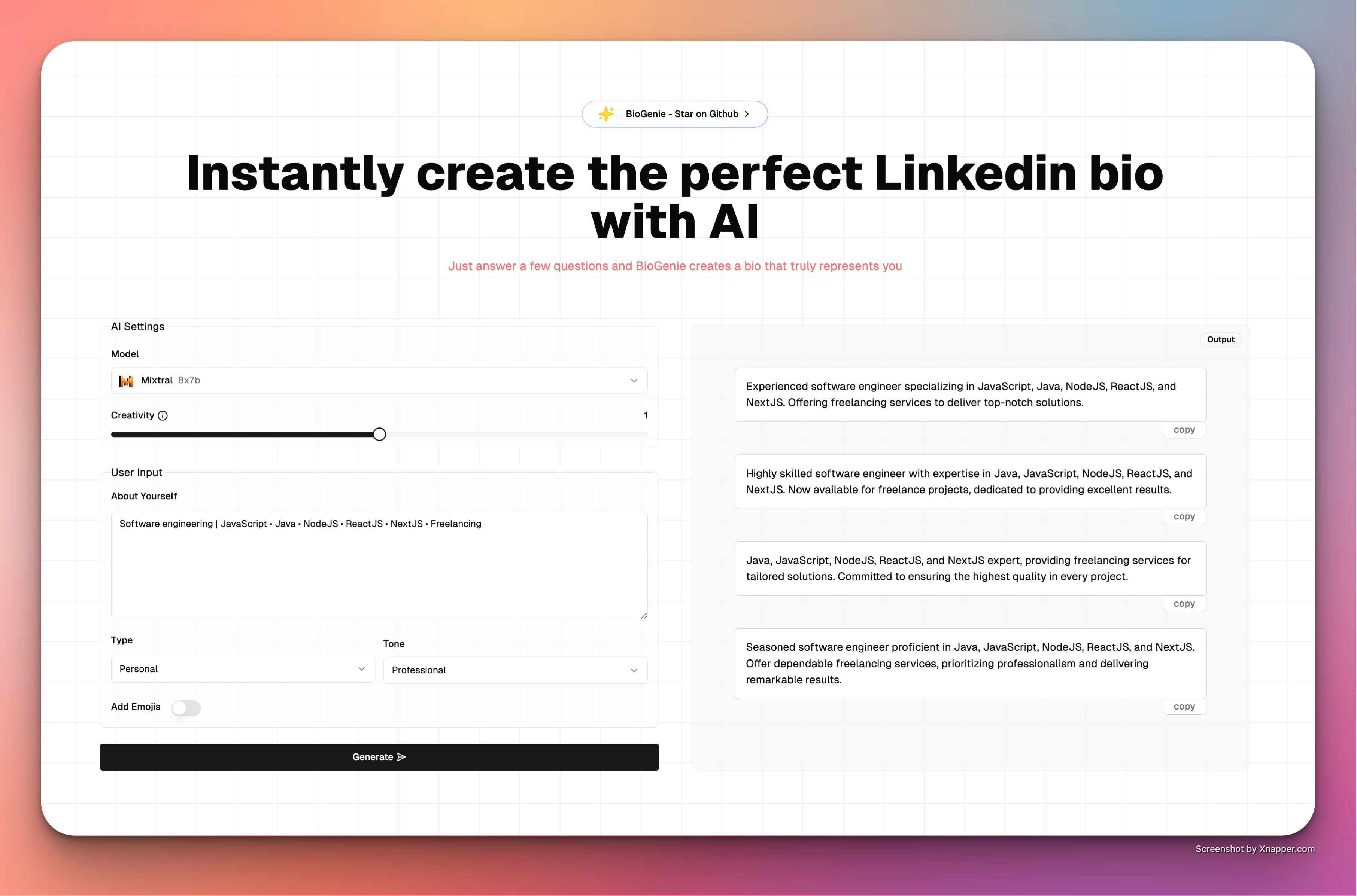 I enjoy working on side and fun projects in my free time. Here are a few of them.